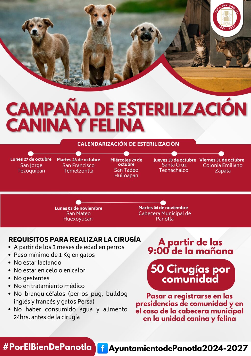 Con el compromiso de fomentar la tenencia responsable de mascotas y promover el bienestar animal, el H. Ayuntamiento de Panotla, que encabeza el presidente municipal Idelfonso Carro Roldán, a través de la Dirección de Unidad Canina y Felina en coordinación con la Secretaría de Salud del Estado de Tlaxcala, dio inicio a la Campaña de Esterilización Canina y Felina 2025.