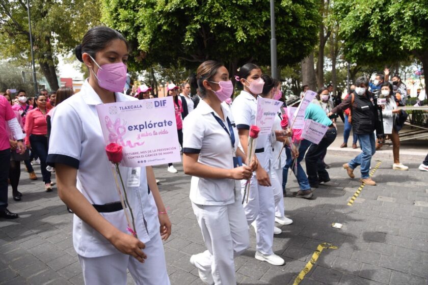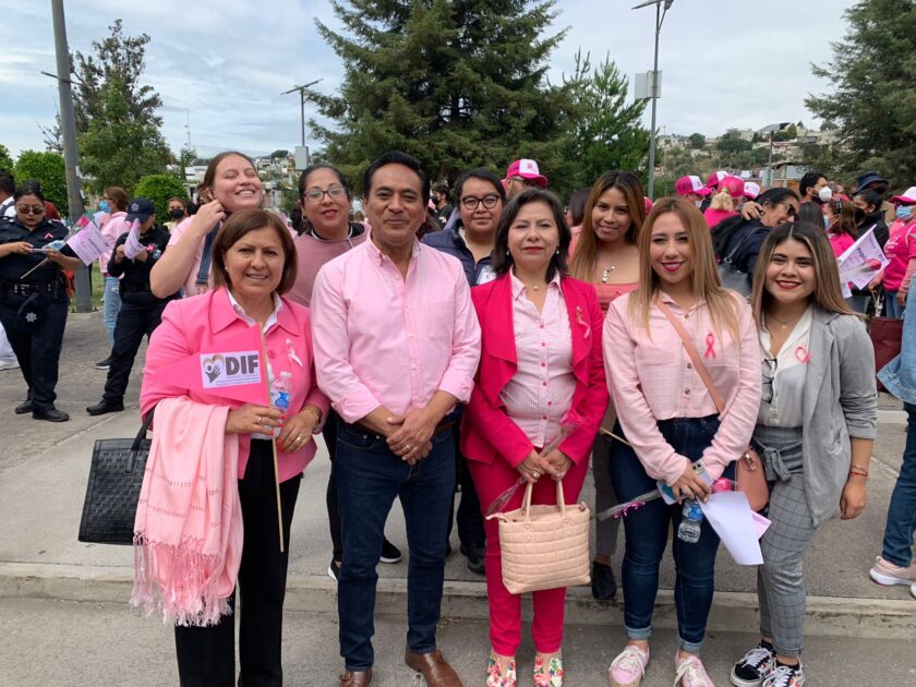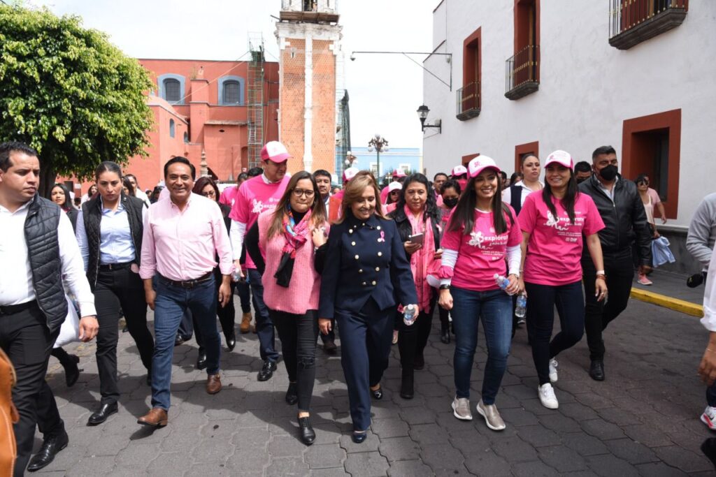 Un contingente numeroso de personas recorrió la mañana de hoy calles céntricas de la Ciudad de Tlaxcala. La gobernadora, Lorena Cuéllar, y el presidente municipal, Jorge Corichi, participaron en la “Caminata Rosa”, destacando que sus administraciones se han activado en la batalla contra la enfermedad.