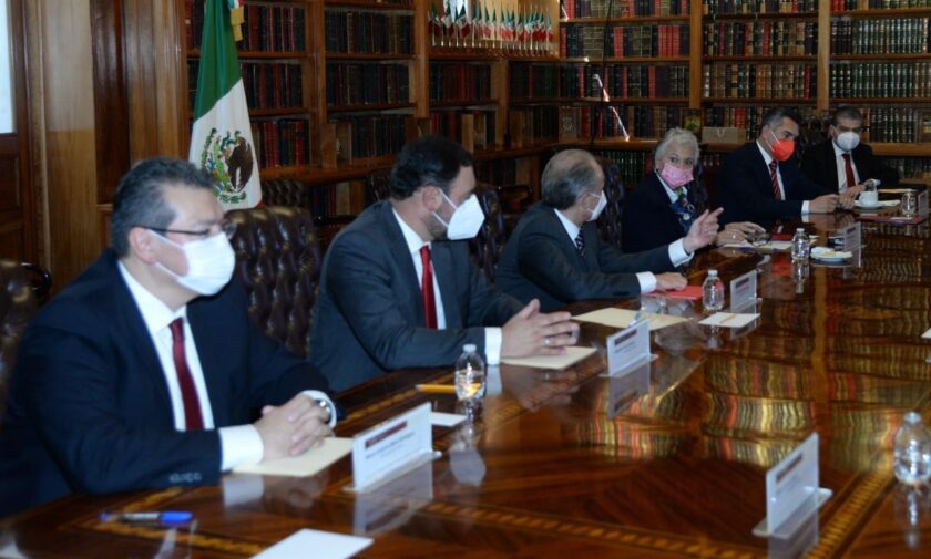 Ciudad de México.- El Gobernador Marco Mena participó este miércoles en la reunión de mandatarios priístas con la Secretaria de Gobernación Olga Sánchez Cordero y el Presidente del Comité Ejecutivo Nacional del PRI, Alejandro Moreno Cárdenas.