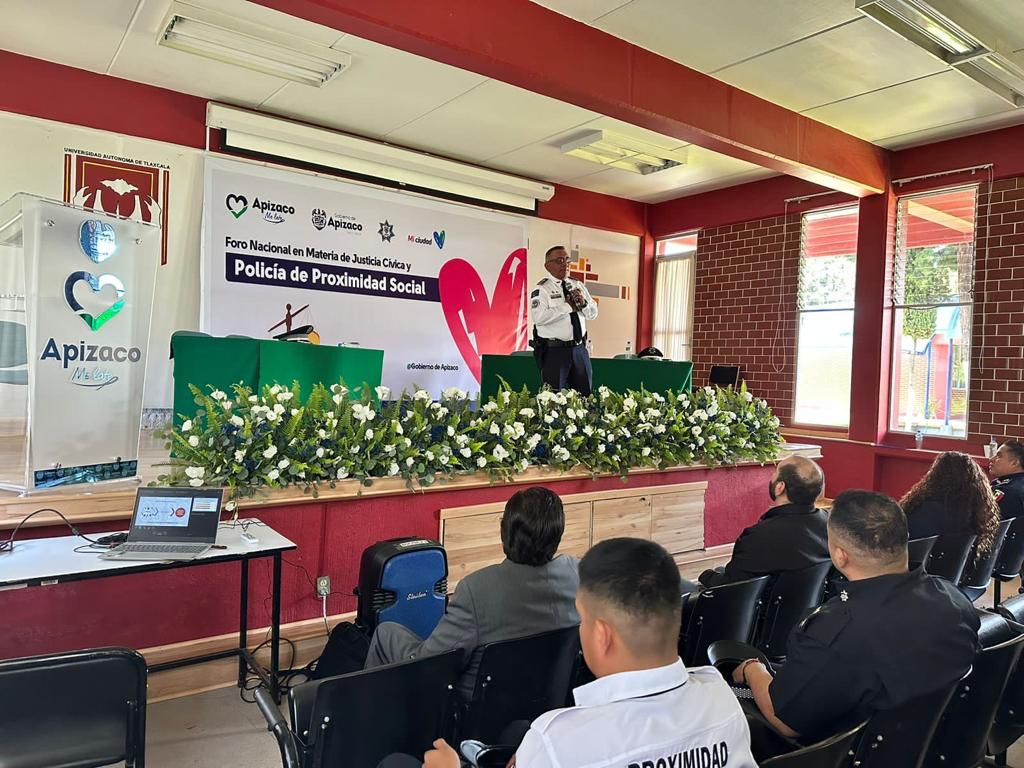 El Coordinador de Proximidad Social de la Dirección de Seguridad Pública de Chiautempan, Edgar Hernández Pérez, participó como ponente en el Foro Nacional en materia de Justicia Cívica y Policía de Proximidad Social, realizado en Apizaco.