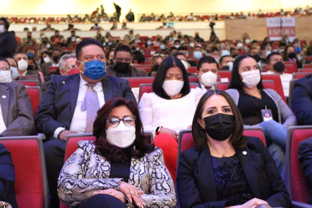 En el presídium, acompañaron a la Gobernadora del Estado, el Secretario de la Función Pública Federal, Roberto Salcedo Aquino; la Secretaria de la Función Pública del Estado, Eréndira Cova Brindis; la diputada presidenta de la Comisión Permanente del Congreso del Estado, Reyna Flor Báez Lozano; la Magistrada Fanny Margarita Amador Montes, y la Presidenta de la Comisión Estatal de Derechos Humanos, Jakqueline Ordoñez Brasdefer.