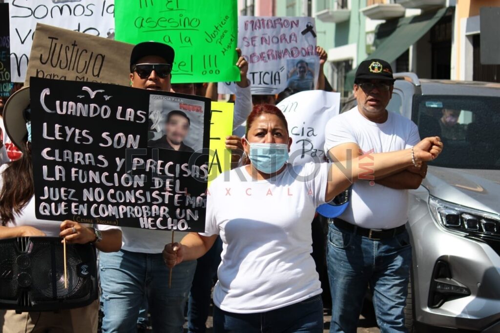 Familiares y amigos de Miguel N., quien fue privado de la vida el pasado 24 de marzo en el municipio de Tlaxcala, marcharon en la capital del Estado para exigir justicia para el joven, previo a la audiencia del imputado ante el Juez de Control.