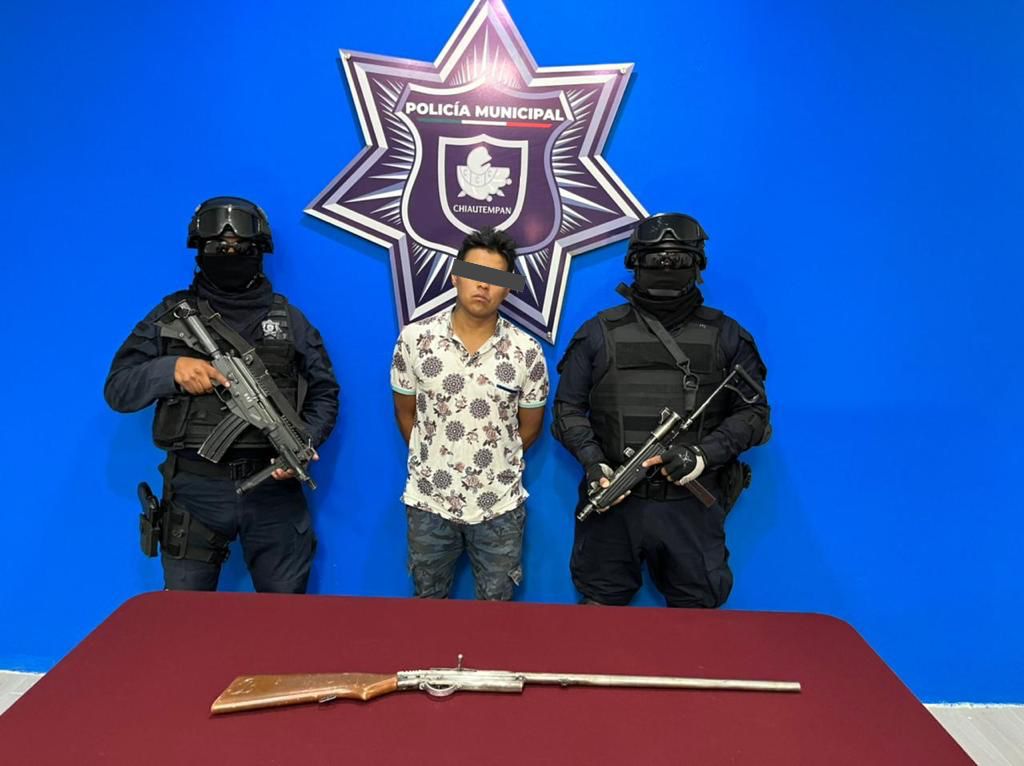 En un operativo de seguridad y vigilancia por el municipio de Chiautempan, elementos adscritos a la Dirección de Seguridad Pública aseguraron a Luis Fernando N. por la portación ilegal de un arma de fuego.