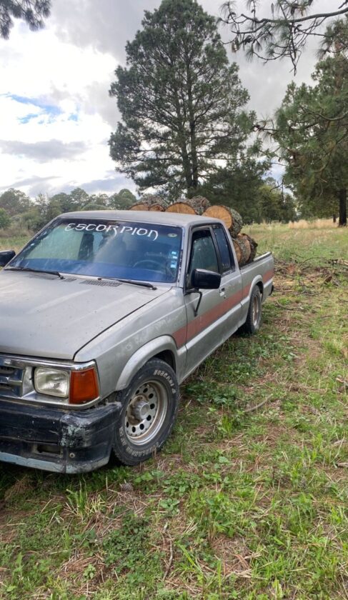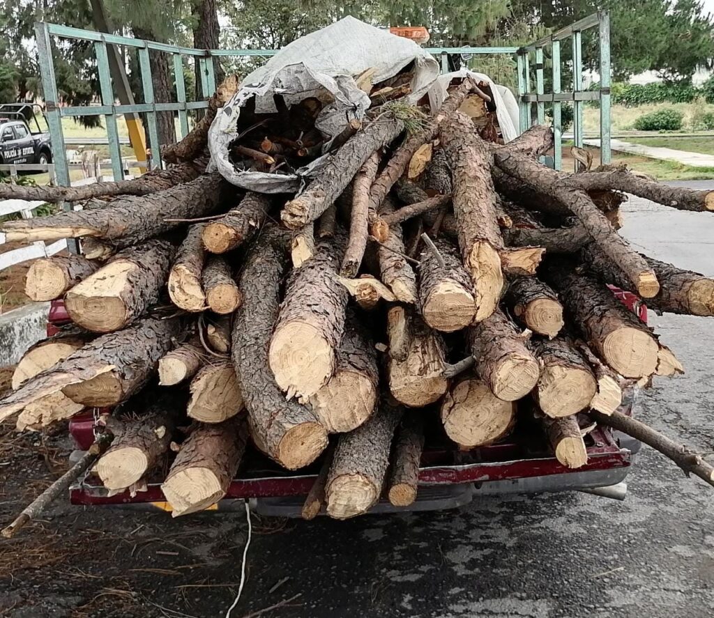 Mientras que, en el camino local del municipio de San José Teacalco, con dirección a la caseta tres de Ecología y Medio Ambiente, ubicada en el Parque Nacional Malintzi, se ubicó una camioneta Mazda B200, tipo Pick- Up, que se encontraba cargada con materia prima forestal, de madera y troncos de diferentes dimensiones.