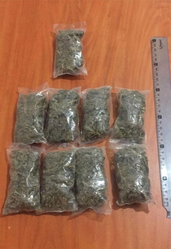 Tras detener la unidad, los masculinos mostraban una conducta reticente y acometedora hacia la autoridad policial, ante tal comportamiento, realizaron una inspección preventiva localizando en el interior del vehículo, nueve envoltorios que en su interior contenían hierba seca con características propias de la marihuana.