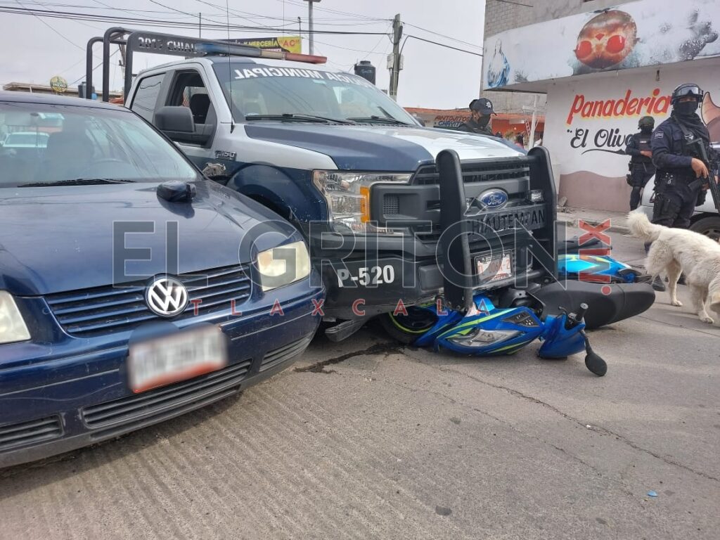 Policías municipales de Chiautempan protagonizaron una trifulca con pobladores, luego de que una patrulla de la Dirección de Seguridad Pública atropellara por accidente a un motociclista.