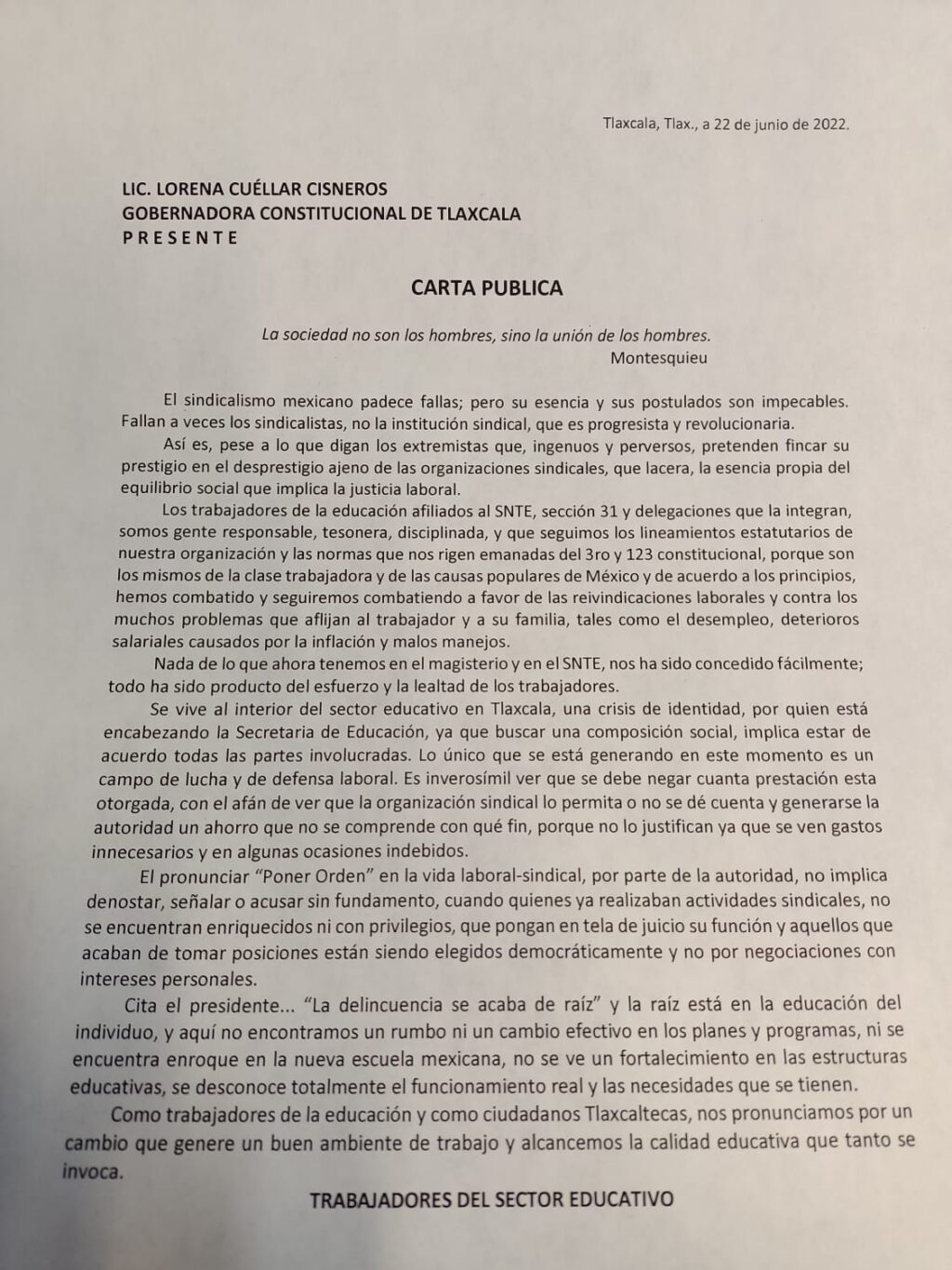 Por ello, también solicitó la pronta destitución de Homero Meneses, supuestamente por ser desleal a los principios de la Gobernadora, a quien le enviaron un oficio explicando a modo la supuesta situación.