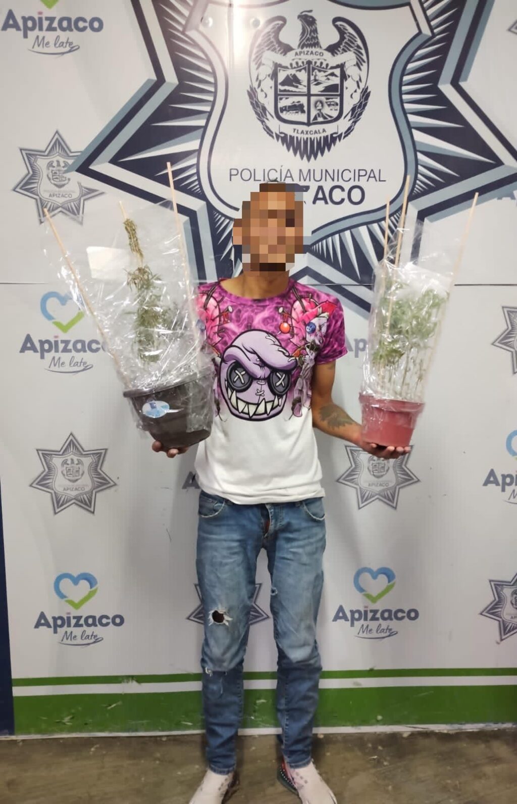 Oficiales del Grupo Especial de Operaciones (GEO), de la Dirección de Seguridad Pública Municipal, Vialidad y Transporte de Apizaco, durante un recorrido de prevención y vigilancia, aseguraron a un sujeto por su presunta responsabilidad en la comisión de delitos contra la salud.
