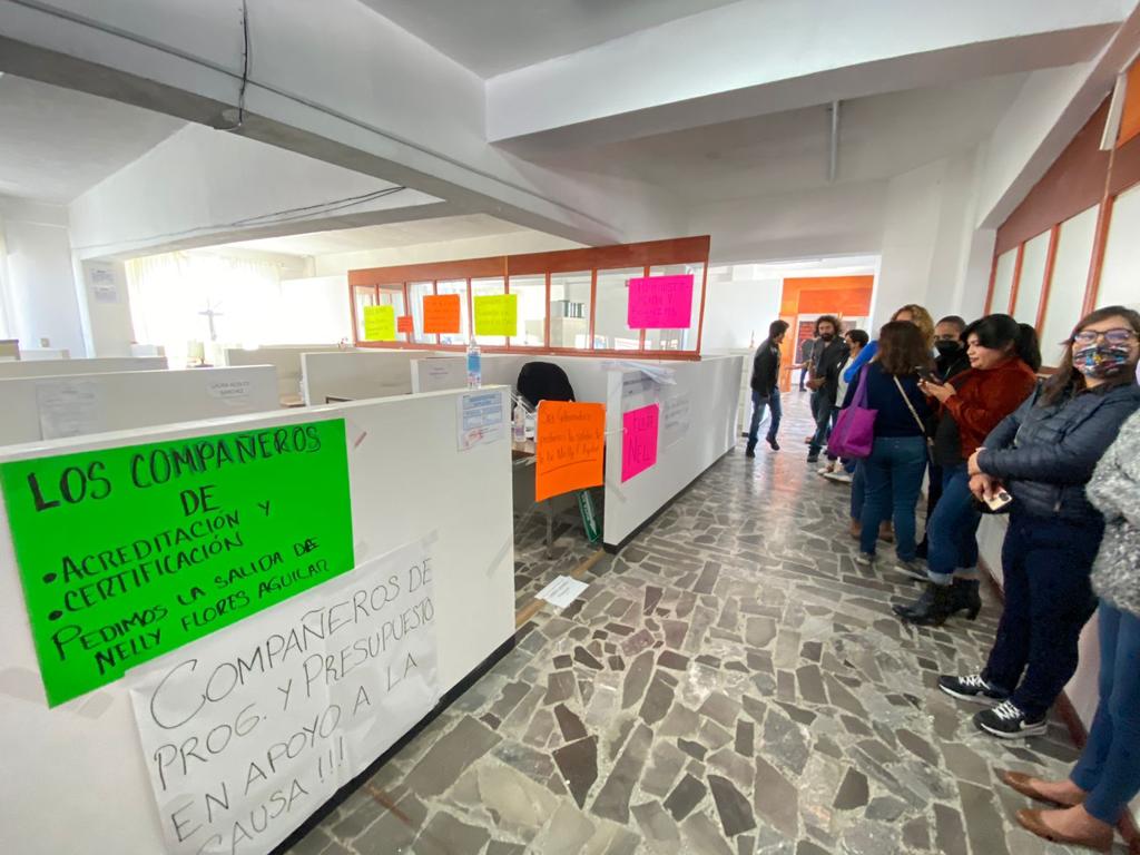 Trabajadores del Instituto Tlaxcalteca para la Educación de los Adultos (ITEA) se manifestaron al interior de dicha institución gubernamental para exigir la destitución de la directora de Acreditación y Certificación del ITEA, Nelly Flores Aguilar, por desconocimiento de funciones.