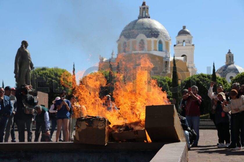 Finalmente realizaron la quema simbólica de un ataúd de cartón, que representó la libertad de expresión, como muestra de que estuvo en riesgo lo consagrado en los artículos sexto y séptimo constitucional.
