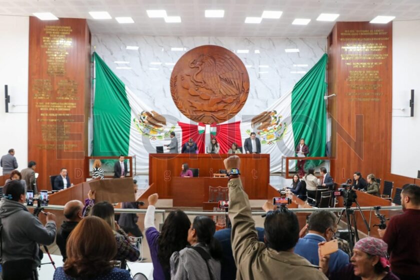 Previo al inicio de la Segunda Sesión Ordinaria del Congreso local, activistas, representantes de organizaciones civiles y periodistas, se manifestaron al exterior del Palacio Legislativo, en demanda de que los congresistas acaten lo que juraron en el Pleno: respetar, guardar y hacer guardar lo que establece la Constitución Política de los Estados Unidos Mexicanos.