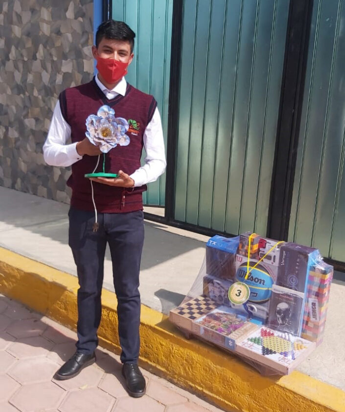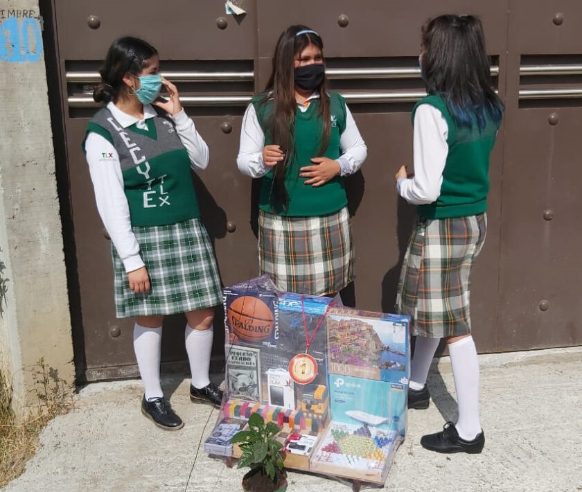 El primer lugar lo obtuvieron Jazmín Cuahutenco, Geraldin Ortiz y Sarahi Rojas, del plantel 31, quienes participaron con el proyecto “Maceta” y cumplieron con aspectos como calidad técnica y estética, material utilizado, proceso de elaboración y creatividad, además de la entrevista virtual que les realizó el jurado calificador.