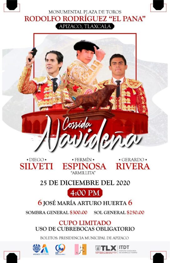 El gobierno de Apizaco, encabezado por Julio César Hernández Mejía, dio a conocer las corridas de toros que se prepararon para el 25 de diciembre y el 1 de enero en la Monumental, Rodolfo Rodríguez “El Pana”.