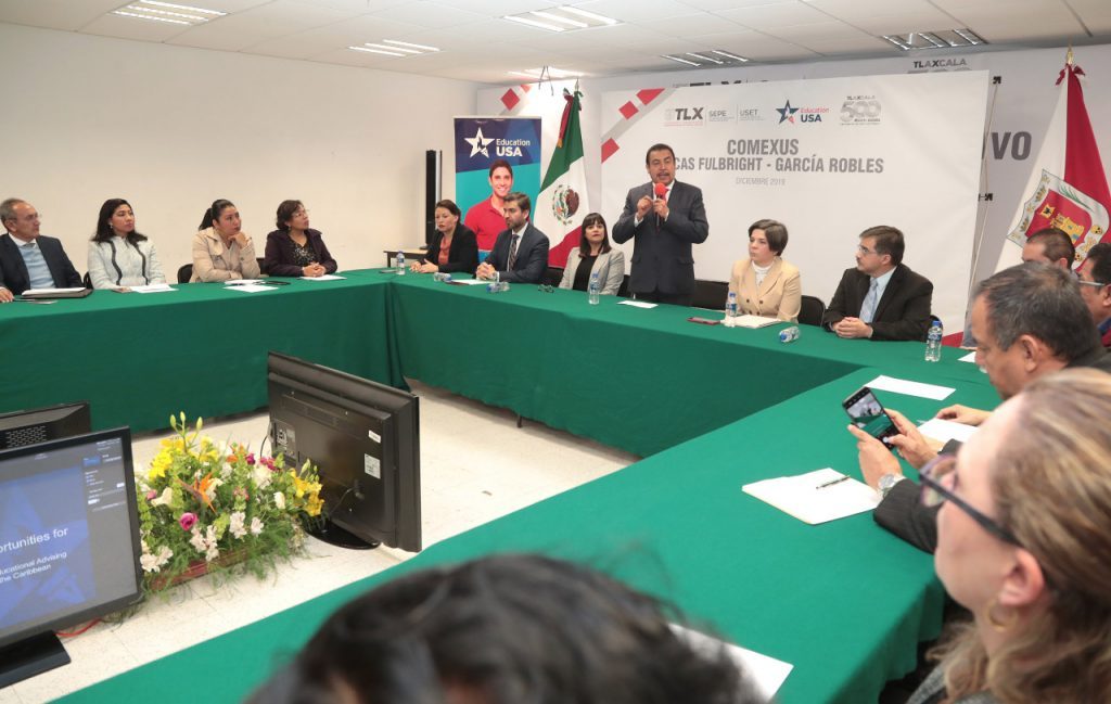 En el marco de la presentación de las becas Fulbright-García Robles del Centro Education USA en Tlaxcala, el Secretario de Educación Pública del Estado, Florentino Domínguez Ordóñez, afirmó que el Sistema Estatal de Becas reconoce la excelencia académica de estudiantes para contribuir a la formación de profesionistas que aporten al desarrollo del estado y fortalezcan su núcleo familiar.