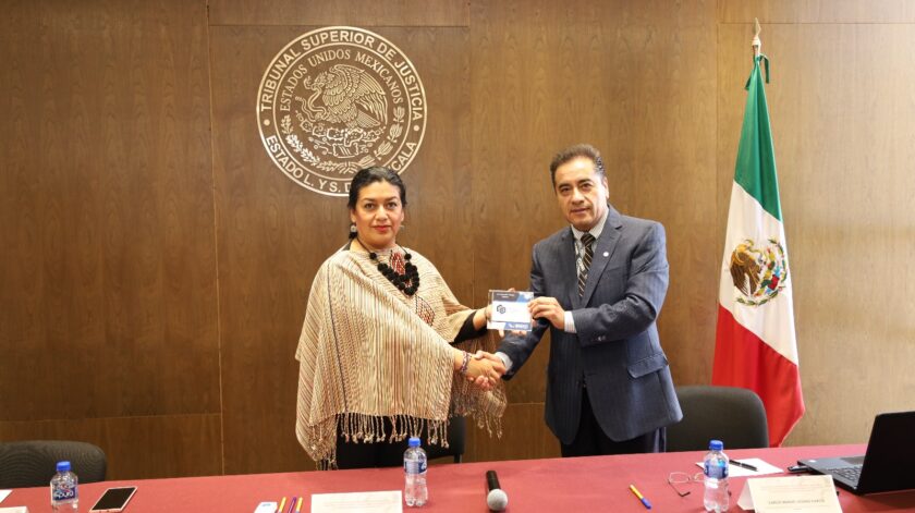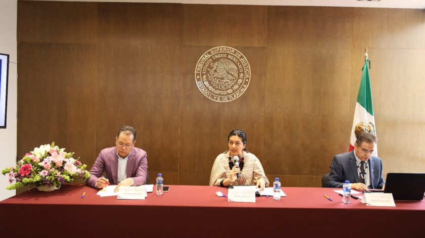 La Magistrada Presidenta del Tribunal Superior de Justicia y del Consejo de la Judicatura del Estado (TSJ-CJE), Mary Cruz Cortés Ornelas, conoció los resultados generales del Censo Nacional de Impartición de Justicia Estatal 2022, y recibió los cuestionarios para el levantamiento del Censo Nacional de Impartición de Justicia 2023, de manos del Coordinador Estatal del Instituto Nacional de Estadística y Geografía (INEGI), en Tlaxcala, Carlos Manuel Lozano García.