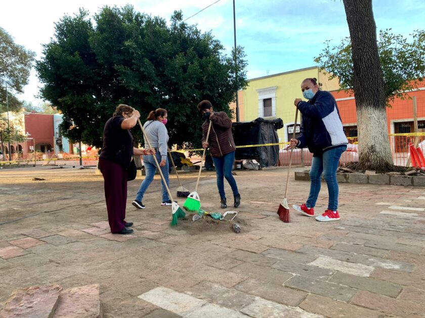 Añadieron su esfuerzo al de 33 trabajadores de limpia y recolección, así como a 16 de parques y jardines, para realizar una ardua tarea en las inmediaciones de la remodelada Plaza de la Constitución del Centro Histórico.