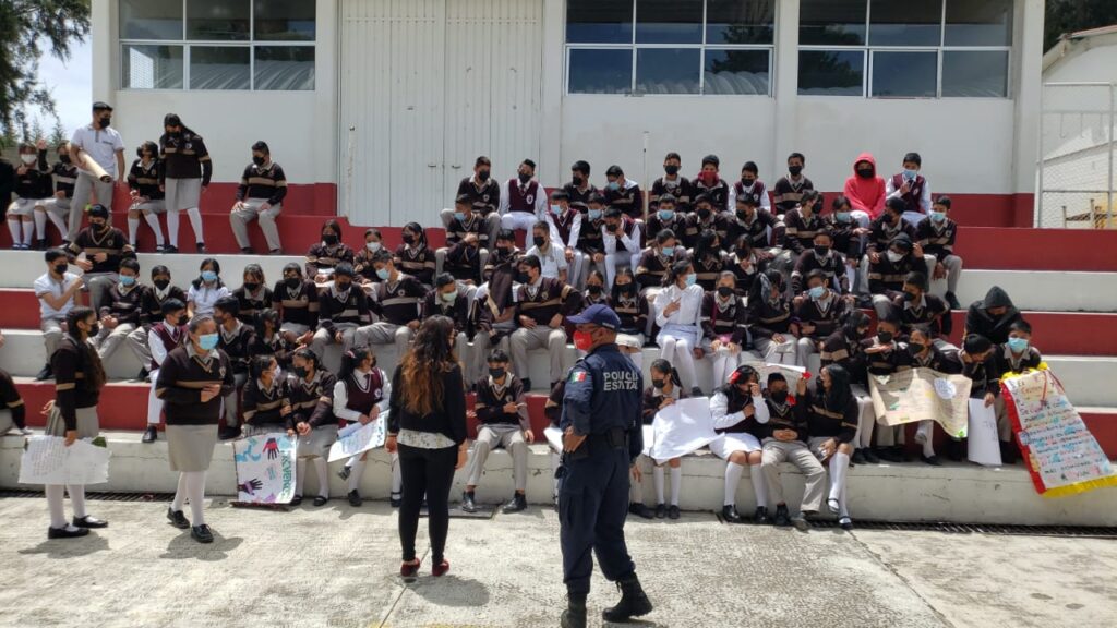Alumnas y alumnos de las escuelas Secundaria Técnica No. 10 y la Telesecundaria “Cuatro Señoríos”, expusieron alrededor de 138 carteles, como parte de las estrategias de la SSC para disminuir las amenazas y peligros a los que se encuentran expuestos en sus respectivas comunidades.