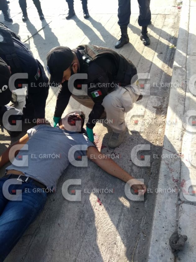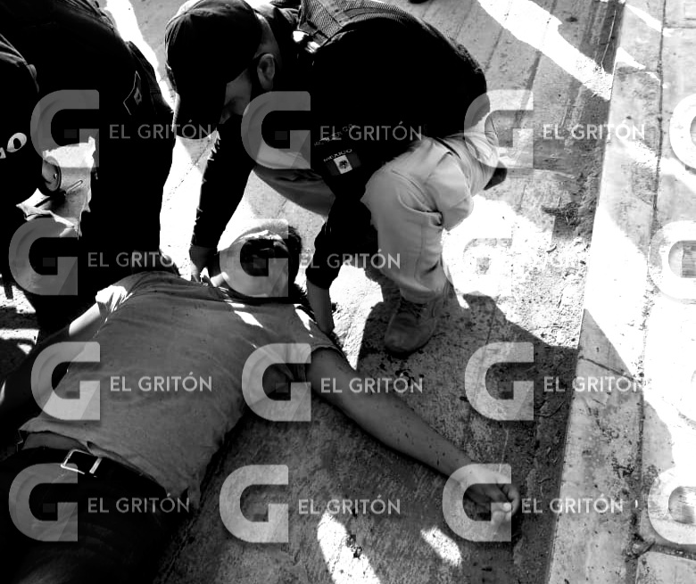 De inmediato paramédicos arribaron a la calle Aldama esquina con 21 de Marzo y prestaron los primeros servicios prehospitalarios al hombre, a quien no se le diagnostico una lesión por arma de fuego pero si un traumatismo craneoencefálico producto de un golpe con una piedra.