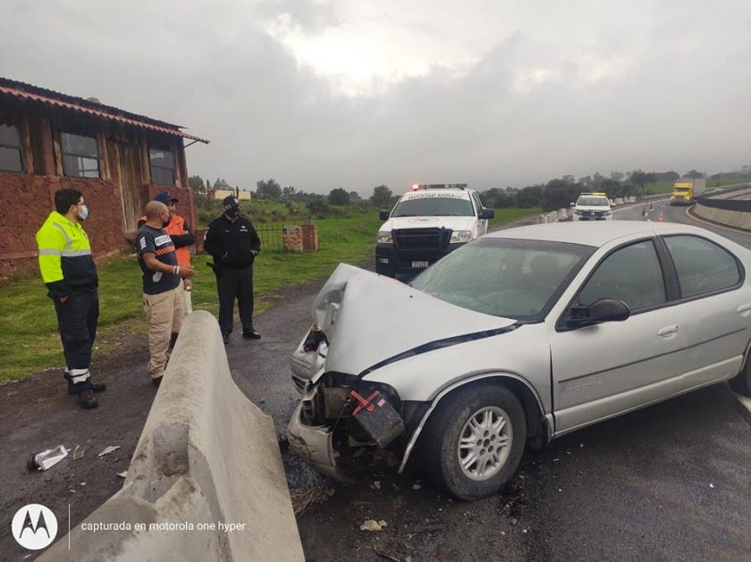 La tarde de este jueves , Protección Civil Calpulalpan acude a la atención de reporte de accidente vehicular sobre la carretera México Veracruz km 54 a la altura de la comunidad de San Felipe Sultepec, al llegar al lugar se encontró un vehículo colisionado en muro de contención, como resultado dos lesionados, de nombres Belén Carmina N. de 19 años originaria de Texcoco y a Jorge Miguel Vázquez N. de 23 años, quienes fueron atendidos de manera inmediata por PC Calpulalpan, así mismo se solicitó el apoyo de una ambulancia, en este caso llegó a dar el apoyo la ambulancia de ASEPROCEM para trasladar a los lesionados al hospital general de Calpulalpan.