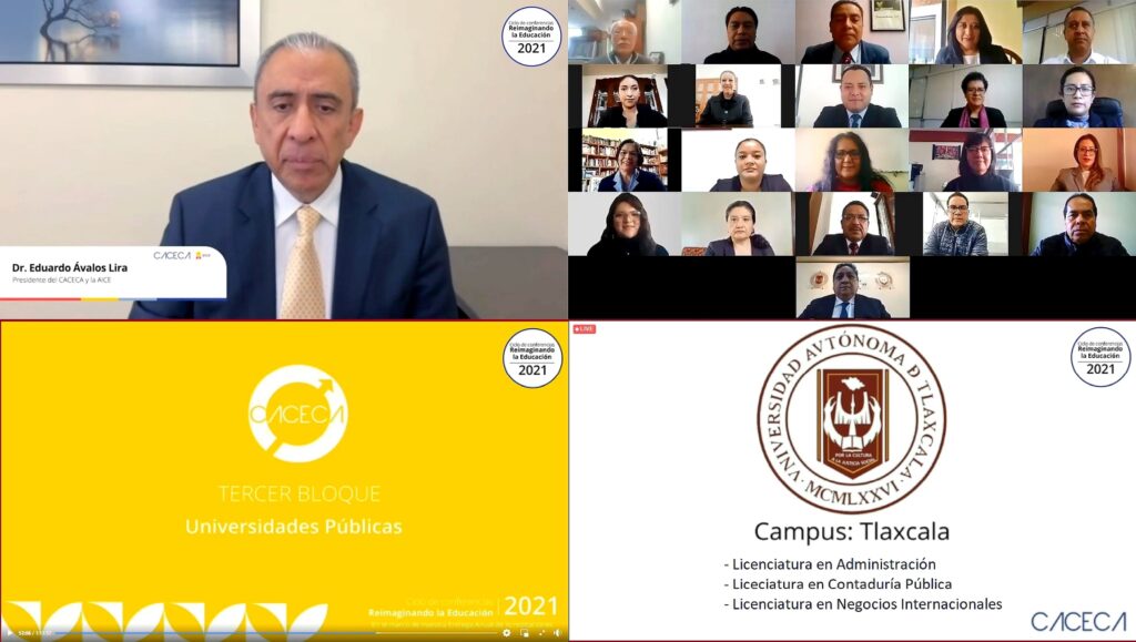 Para asegurar la calidad de sus programas educativos, la Universidad Autónoma de Tlaxcala (UATx), a través de la Facultad de Ciencias Económico Administrativas, dirigida por el Dr. Juan George Zecua, recibió la constancia de reacreditación de las Licenciaturas en Administración, en Contaduría Pública y en Negocios Internacionales, por parte del Dr. Eduardo Ávalos Lira, Presidente del Consejo de Acreditación en Ciencias Administrativas, Contables y Afines, A.C. (CACECA), tras someterse a una evaluación en el año 2020, la cual tiene una vigencia de cinco años.