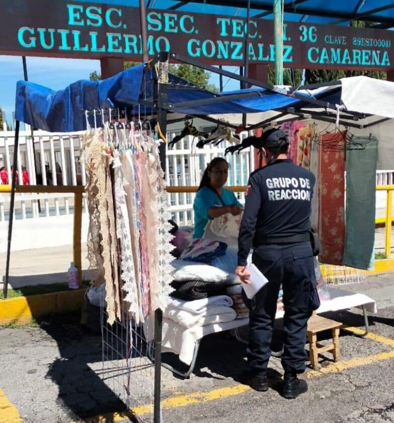 Elementos de la Dirección de Seguridad Ciudadana y Movilidad del Municipio de Tlaxcala hace labores de proximidad y prevención en el mercado comunitario de la delegación La Joya.