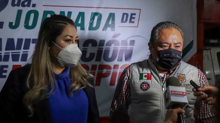 La Presidenta Municipal de Tlaxcala, Mildred Vergara Zavala y el titular de la Coordinación Estatal de Protección Civil (CEPC), José Antonio Ramírez Hernández pusieron en marcha la noche de este martes la Segunda Jornada de Sanitización en el municipio, a fin de reforzar medidas preventivas y disminuir riesgos de contagio de Covid-19.