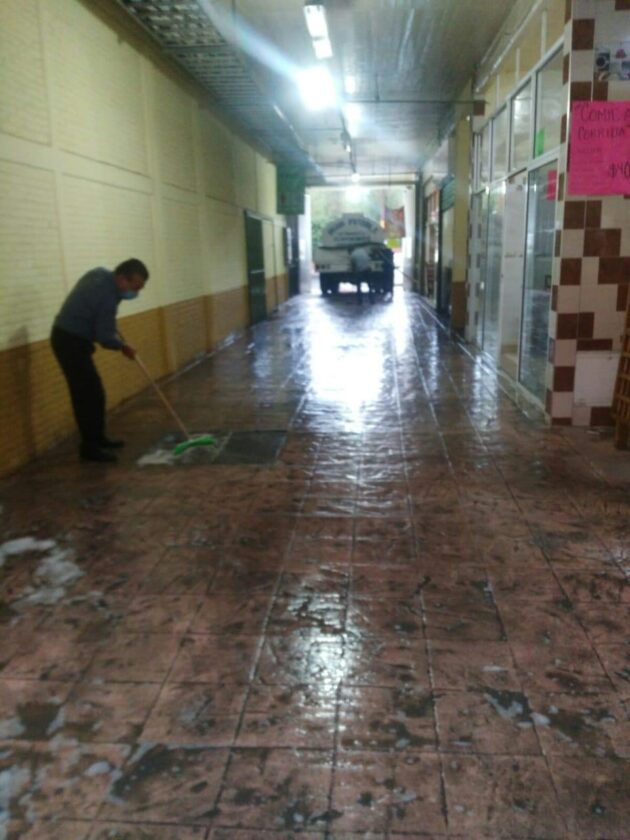 En dichos trabajos que consistieron en lavado de pasillos, paredes y locales con agua, jabón y cloro, se contó con el apoyo de personal de la Dirección de Servicios Públicos, así como de la participación activa de más del 75 por ciento de comerciantes a fin de brindar a los usuarios instalaciones desinfectadas para disminuir la propagación del virus.