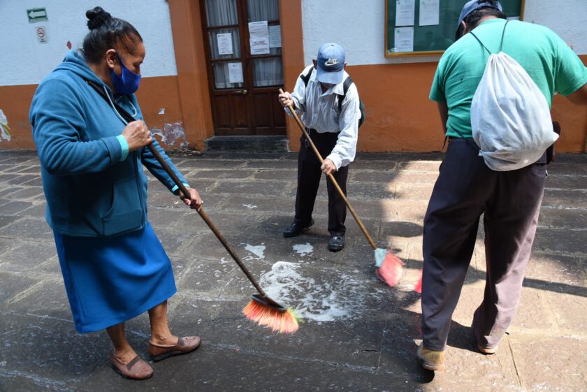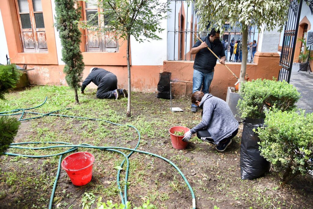 Los trabajos que se realizaron en las oficinas fueron de limpieza profunda, lavado de pisos, barandales, escaleras, techos, luminarias, pintura en botes, contenedores de desechos, bancas, resanado de grietas en algunos muros, jardinería y deshierbado de áreas verdes así como desinfección de oficinas.