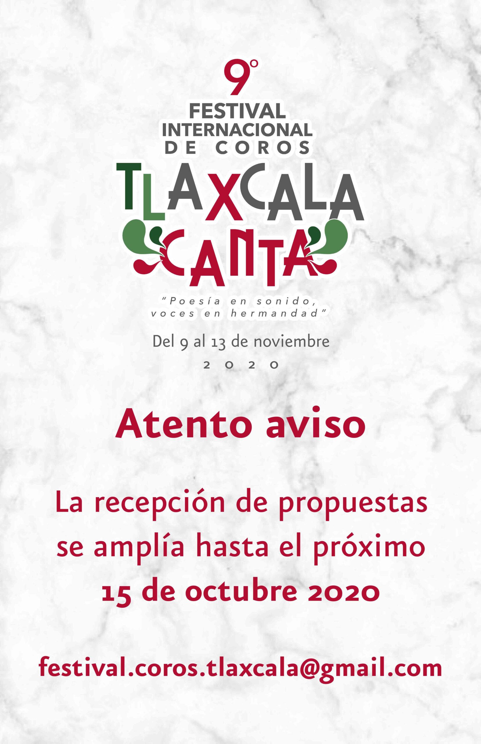 “A pesar de las condiciones sanitarias por Covid-19, el Festival llega a su novena edición, por lo que se extendió el periodo para la recepción de propuestas corales hasta el 15 de octubre próximo”, apuntó.