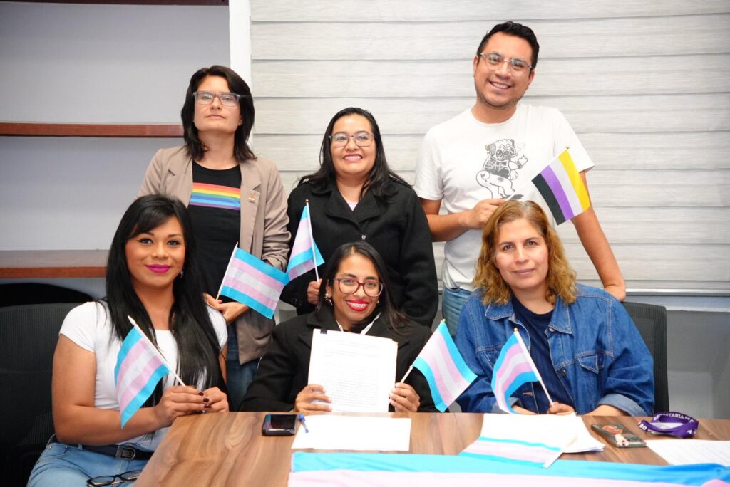 La diputada Gabriela Hernández Islas, presidenta de la Comisión de Derechos Humanos, Grupos Vulnerables y Derecho de Niñas, Niños y Adolescentes recibió este martes en el Congreso del Estado de Tlaxcala la iniciativa de Cupo Laboral para Personas Trans y No Binarias, presentada por activistas de la diversidad sexual y de género, integrantes de la Coalición Mexicana LGBTIQANB+ y la Colectivx Diversidad, acompañados por la titular de la Oficina de Atención a la Diversidad Sexual de la Secretaría de Cultura de Tlaxcala.