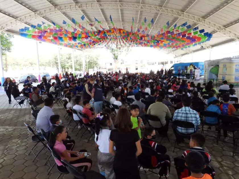 La presidente municipal María Anita Chamorro Badillo dio la bienvenida en plaza del Huehue a niñas y niños de escuelas, Carmen Monroy de San Dionisio, Frida Khalo de La Quebradora, la primaria Josefa Ortiz de Domínguez de San Lorenzo, Nicolas Bravo del barrio de Calapal, la telesecundaria Xicohtencatl de San Dionisio, quienes ayudaron a los personajes “Lucy”, “Pepe” y la mascota del DIF “Cuache”, a enfrentar a la mala nutrición que representan “Gaseoso” y “Grasoso”, teniendo como aliado al plato del buen comer para salir victoriosos y mantenerse saludables.