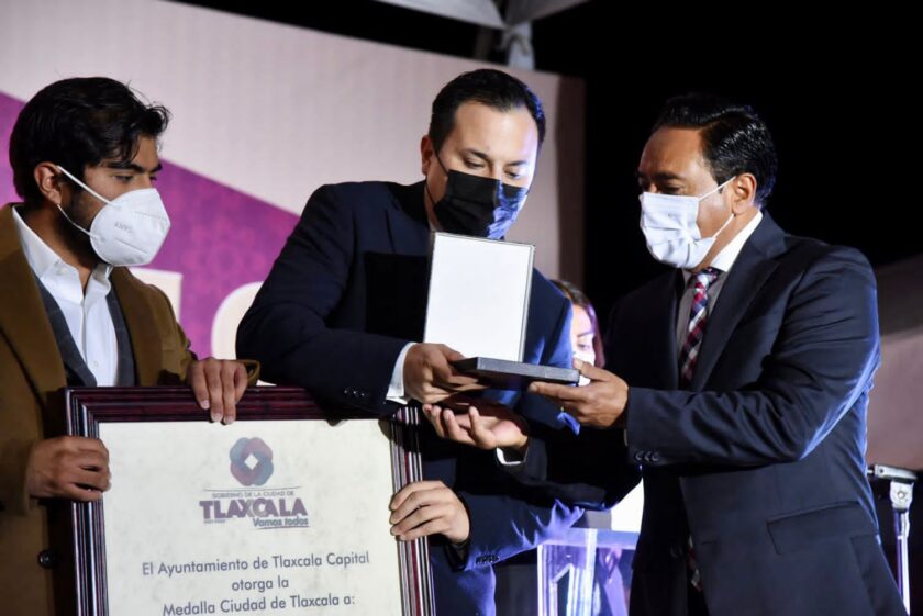 Con el Atrio del Conjunto Conventual Franciscano como la sede oficial de la Sesión Solemne del Cabildo de Tlaxcala, esta noche se llevó a cabo la entrega de la “Medalla Ciudad de Tlaxcala” a personal médico y hospitalario que, desde el inicio de la emergencia sanitaria, ha luchado incansablemente para combatir la enfermedad COVID19, ceremonia encabezada por el presidente municipal, Jorge Corichi.