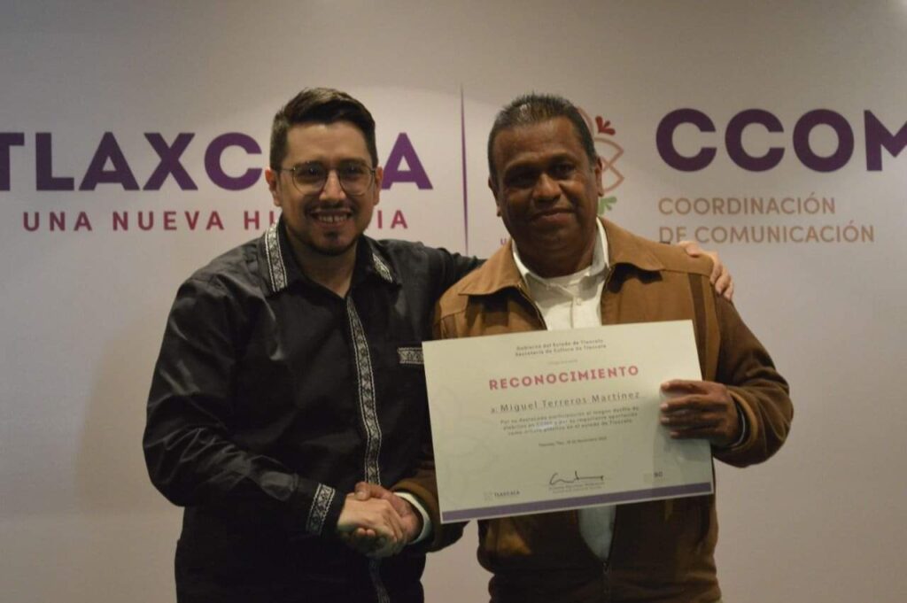 El secretario de Cultura, Antonio Martínez Velázquez reconoció el talento del artista tlaxcalteca e hizo la entrega de un reconocimiento y un premio económico de 10 mil pesos.
