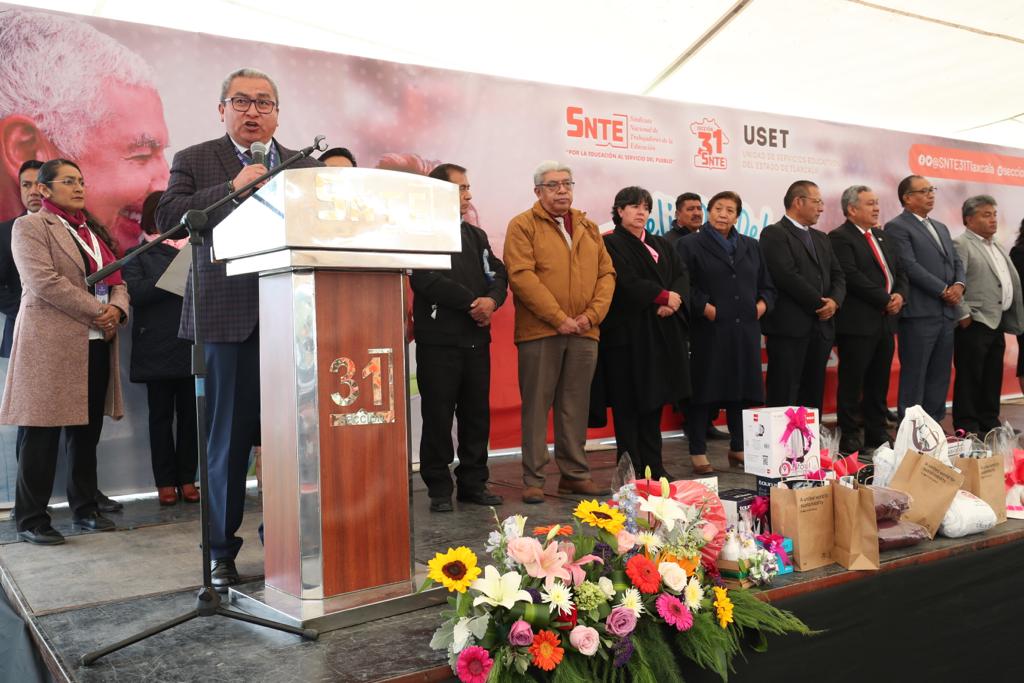 En el marco del Día del Maestro Jubilado de la sección 31 del Sindicato Nacional de Trabajadores de la Educación (SNTE), en representación de la gobernadora Lorena Cuéllar Cisneros, el secretario de Educación Pública local y director general de la Unidad de Servicios Educativos del Estado de Tlaxcala (USET), Homero Meneses Hernández reconoció el legado, entrega, compromiso y dedicación de maestras y maestros que dejaron huella con su enseñanza en las aulas.