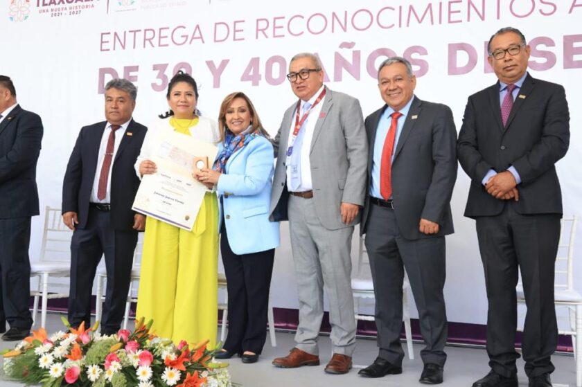 Acompañada en el evento por el secretario de Educación Pública, Homero Meneses Hernández, la titular del Ejecutivo local reconoció a las y los maestros galardonados por entregar gran parte de su vida a la educación de la niñez tlaxcalteca, con lo que han contribuido a la formación de buenos ciudadanos y profesionistas.