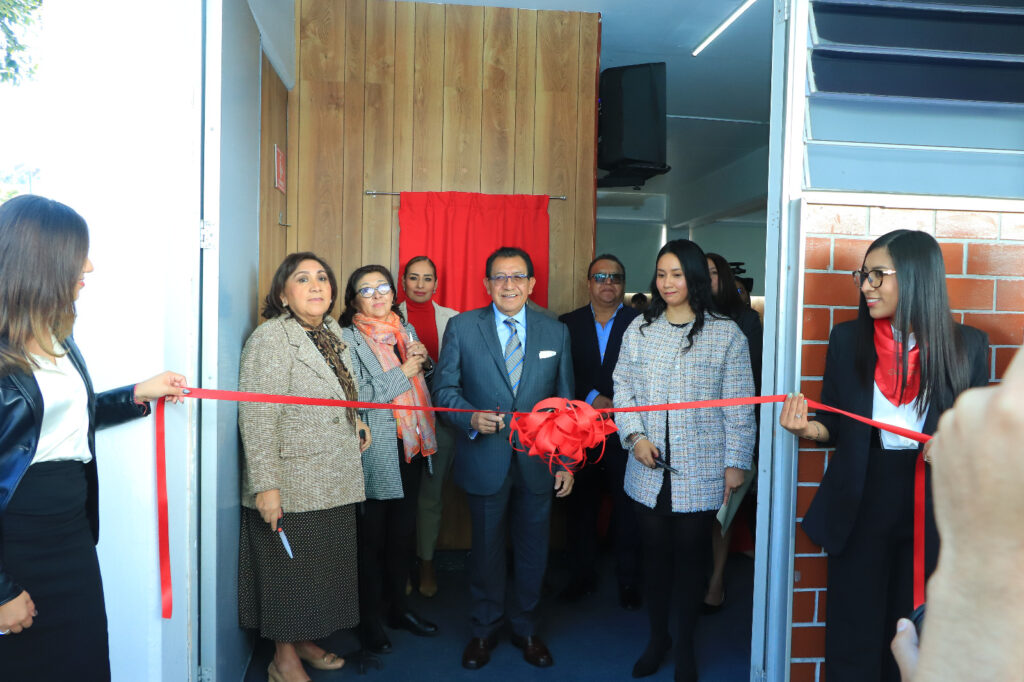 Durante su estancia en la Facultad de Odontología, el Rector develó la placa del Auditorio que, a partir del viernes 14 de noviembre, llevará el nombre de “Doctora Elvia Ortiz Ortiz”, en reconocimiento a la labor académica de la distinguida docente en la formación y acompañamiento de profesionales egresados de las aulas de Odontología.