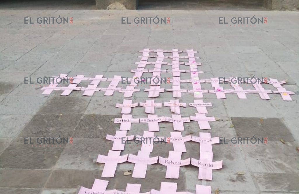 Frente a Palacio de Gobierno, las activistas colocaron de manera simbólica una cruz con todas las mujeres que han sido reportadas como desaparecidas y luego encontradas sin vida.