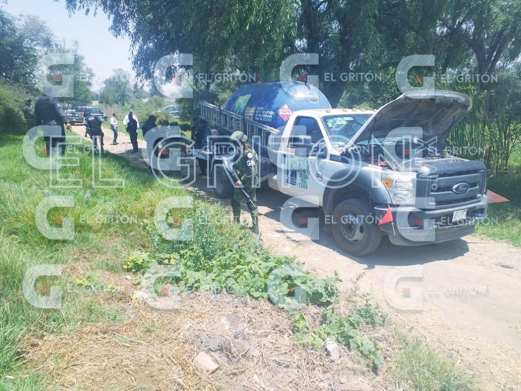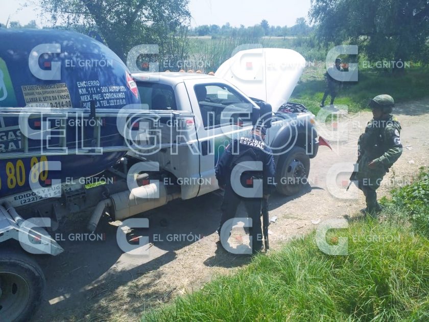 Ahí ubicaron la camioneta de la marca Ford, Súper Duty, tipo Pipa de gas LP, modelo 2012, con placas XA-67-73-A del estado de Tlaxcala, propiedad de la empresa Regio Gas.
