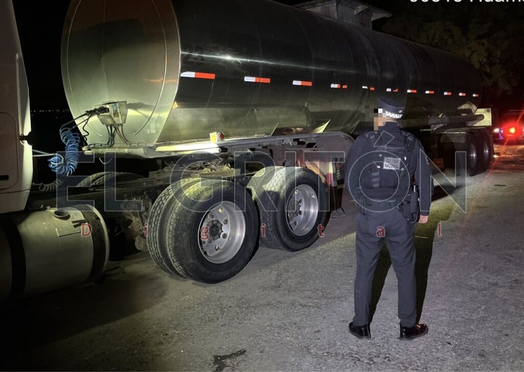 La movilización se originó tras un reporte recibido a través del número de emergencias 911, lo que permitió activar un operativo de búsqueda para localizar un tráiler acoplado a un autotanque que había sido despojado a su conductor durante la madrugada del pasado jueves.