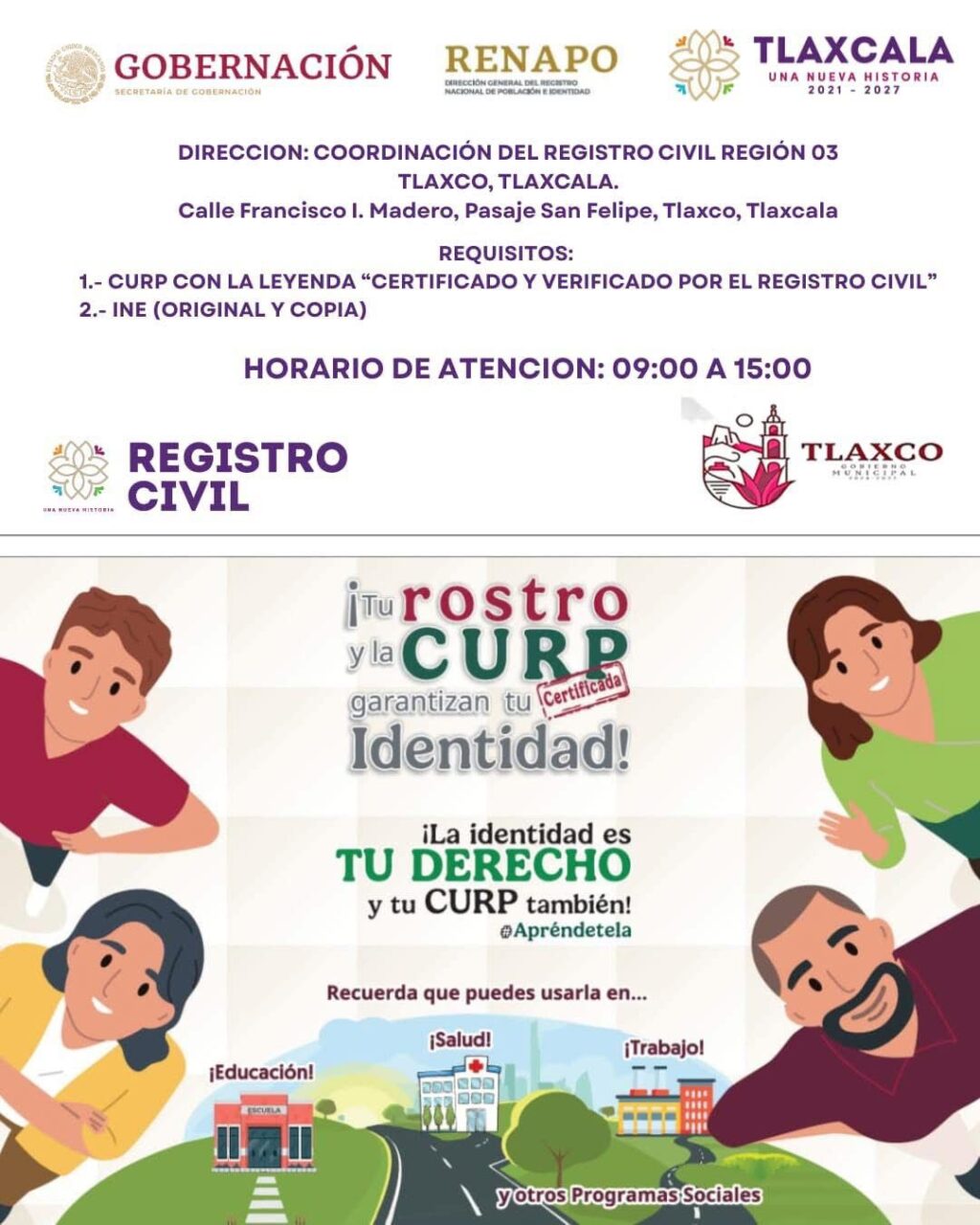El Registro Civil del Municipio de Lázaro Cárdenas invita a la ciudadanía a realizar el trámite de CURP biométrico, con el objetivo de mantener los datos personales correctamente registrados, actualizados y verificados ante las instancias oficiales.