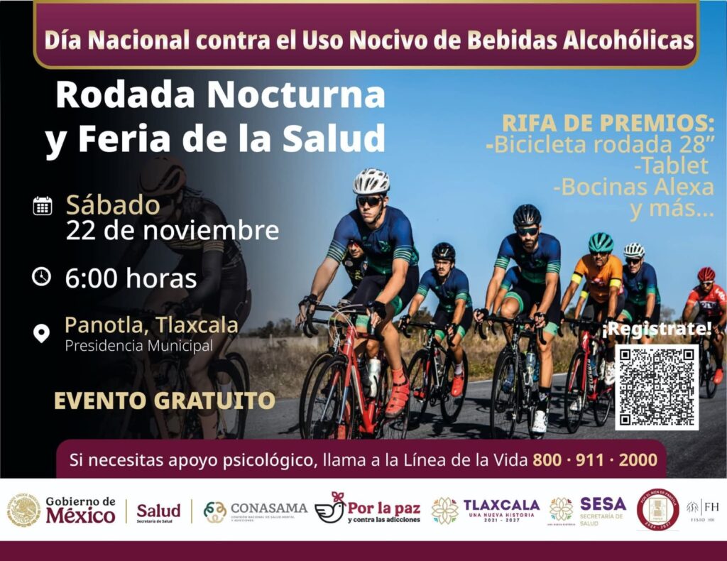 El Ayuntamiento de Panotla informa a la ciudadanía que nuestro municipio será sede de la Rodada Nocturna “Sin Bebidas Alcohólicas es Mejor”, lema nacional impulsado por CONASAMA y orientado a fomentar estilos de vida saludables entre la juventud y las familias panotlenses.