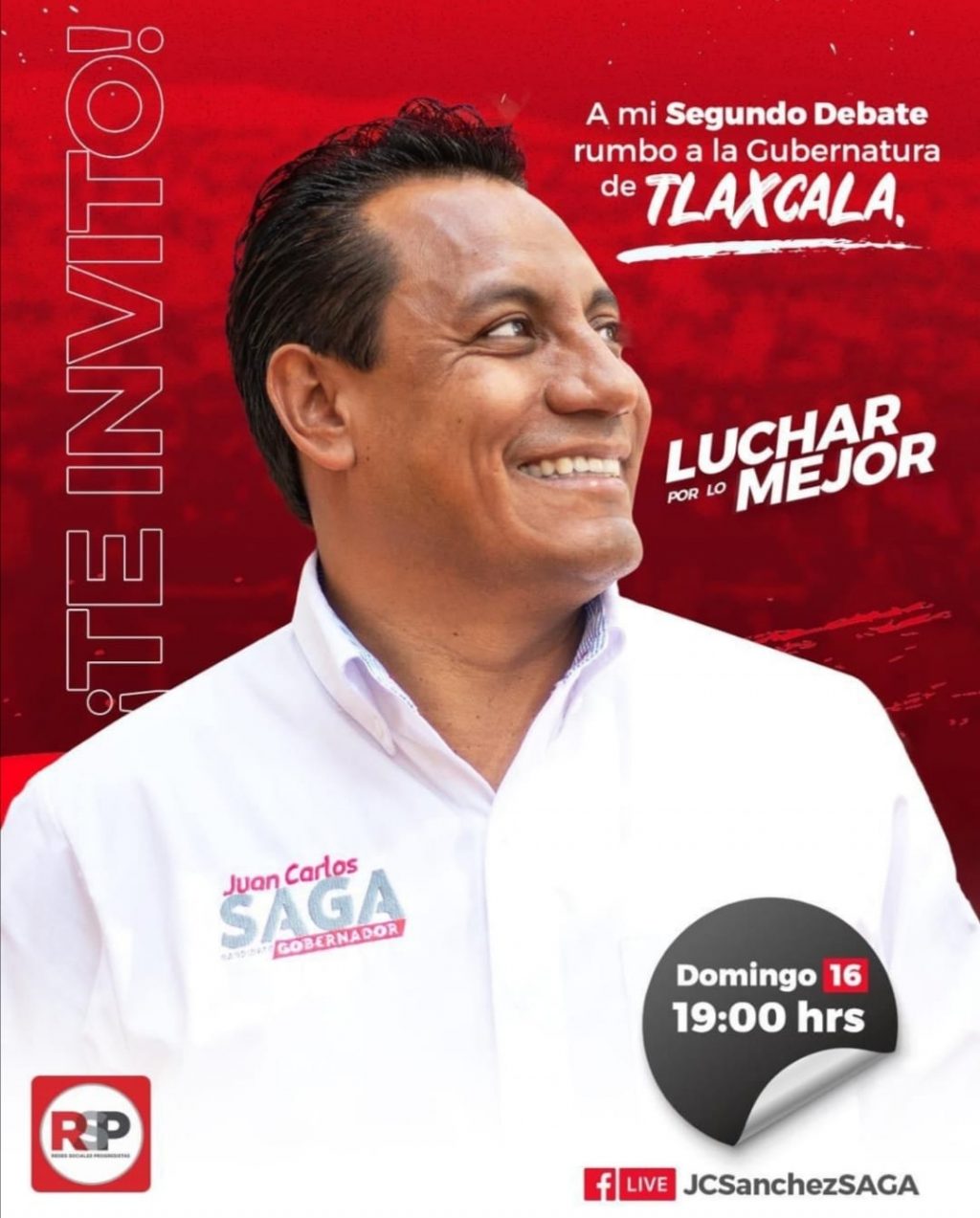 El candidato a gobernador por el partido Redes Sociales Progresistas (RSP), Juan Carlos Sánchez García, SAGA, ha manifestado satisfacción en estos últimos días donde ha ensayado, meditado y recibido el apoyo incondicional de las y los guerreros tlaxcaltecas que quieren una nueva forma de gobernar, basados en las propuestas progresistas que impulsarán el Tlaxcala que merecemos.