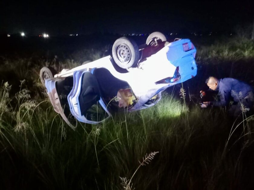 Al arribar al lugar, personal de la Policía Municipal, Protección Civil y paramédicos localizaron un automóvil blanco volcado, el cual se encontraba en completo abandono, sin personas en el interior ni señales inmediatas de ocupantes en la zona.