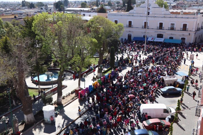 Huamantla, Tlax.- Este martes se dieron cita 6 mil huamantlecos a la explanada de la presidencia municipal con la finalidad de recibir de manera gratuita cobijas y zapatos que obsequiaron el Gobierno de Huamantla que encabeza Jorge Sánchez Jasso, en coordinación con su esposa y Presidenta del Sistema DIF Municipal Gabriela Escamilla Pérez, quienes preocupados y ocupados por la situación económica de las familias del municipio llevaron a cabo esta entrega.