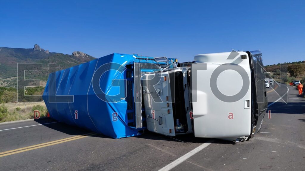 De acuerdo con los primeros reportes, la pesada unidad terminó recostada sobre su lado izquierdo tras salirse del camino y volcar al intentar reincorporarse a la cinta asfáltica.
