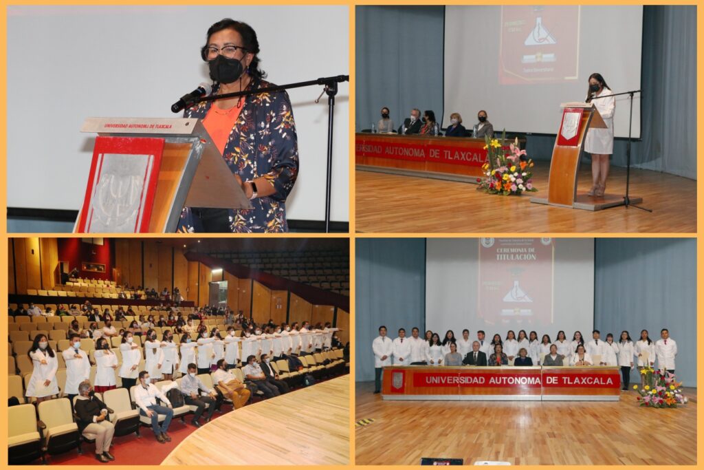 Para dar cumplimiento a los parámetros de calidad y ratificar el nivel de conocimientos adquiridos, la Universidad Autónoma de Tlaxcala (UATx), a través de la Facultad de Ciencias de la Salud, efectúo la ceremonia de titulación de estudiantes de la Licenciatura en Química Clínica, correspondiente al Ciclo Primavera 2022, realizada en el Teatro Universitario.