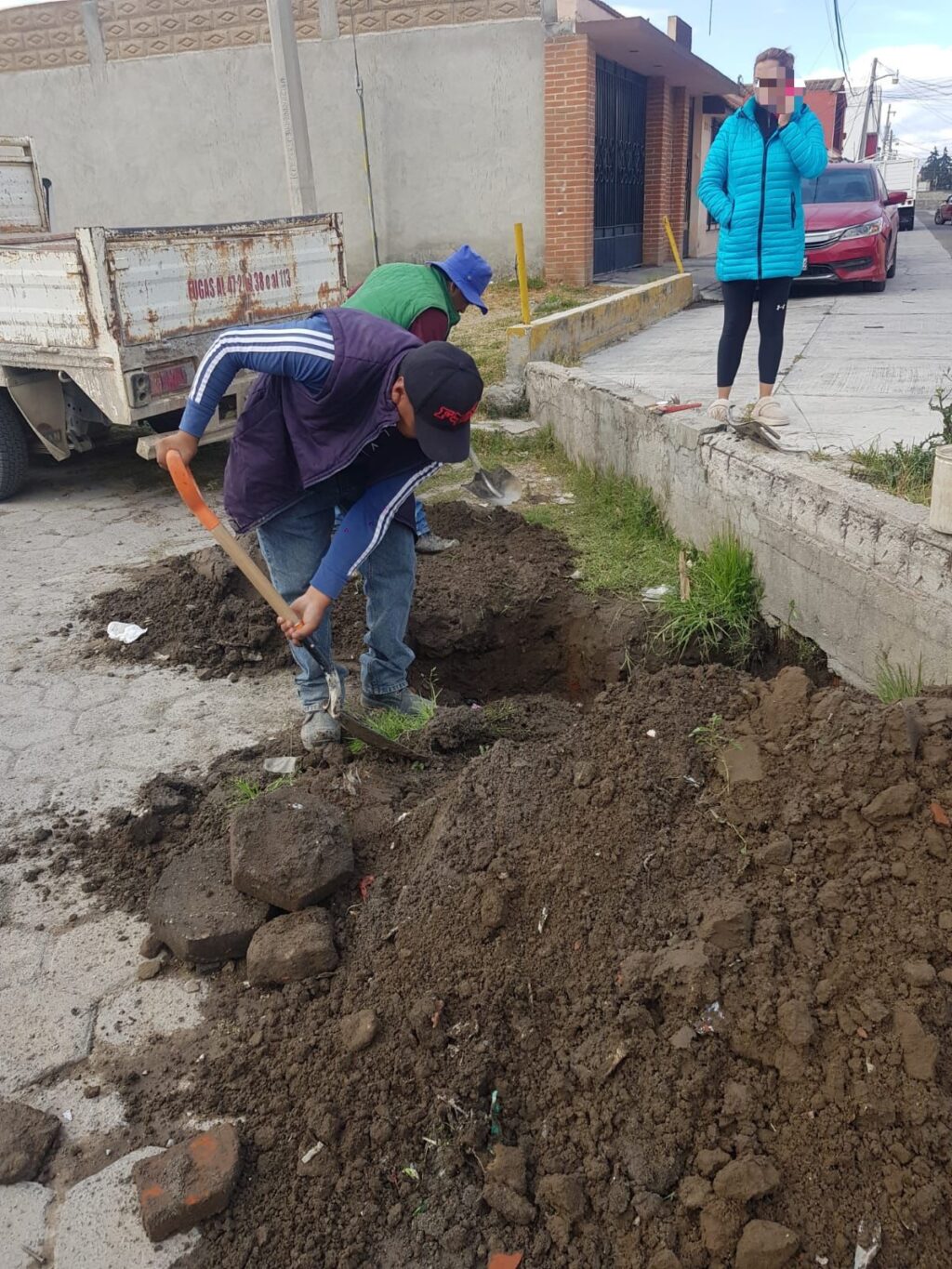 De igual manera, se desarrollaron labores de desazolve en San José Xicohténcatl, fundamentales para el adecuado funcionamiento del drenaje, y trabajos de bacheo en la zona de El Calvario y el Fraccionamiento Giralda, una vez concluidas las intervenciones en la red de agua.