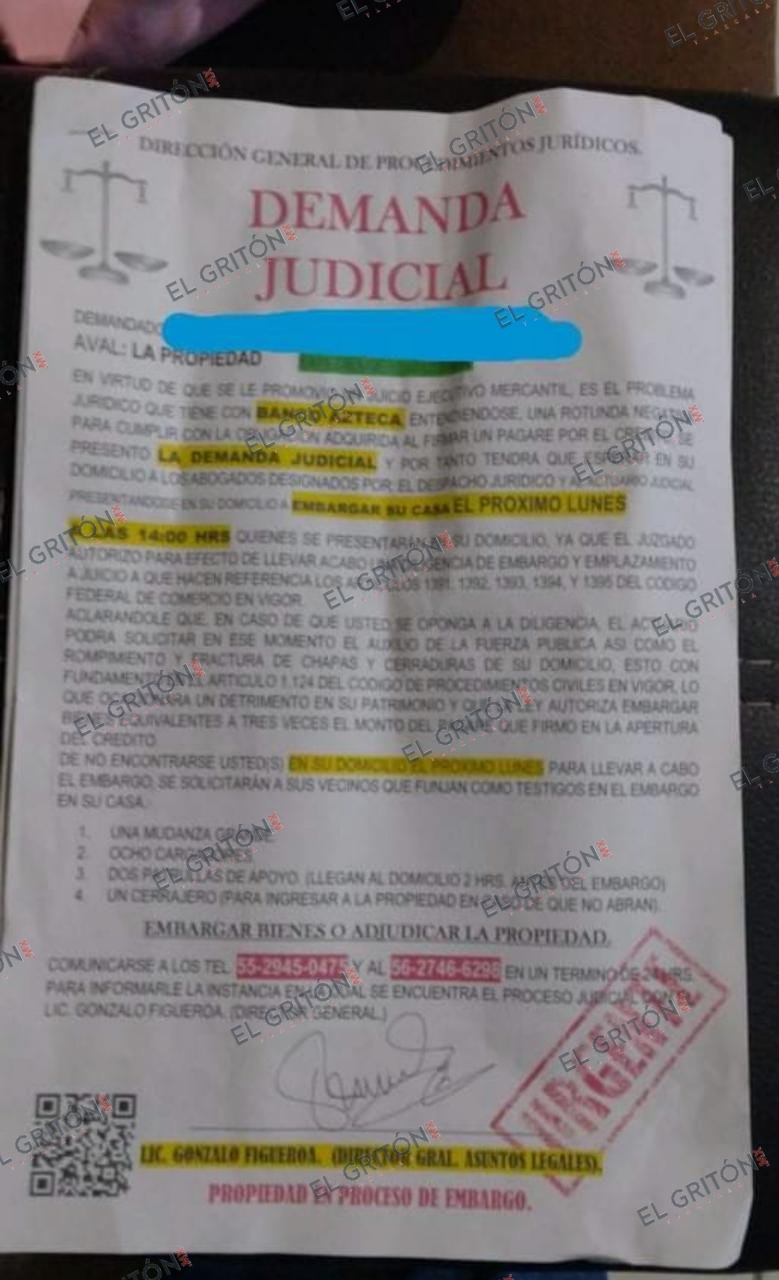 Nuevamente, se viralizó el intento de fraude por parte de Gonzalo Figueroa por un supuesto adeudo en Banco Azteca que amerita embargo de casa habitación.