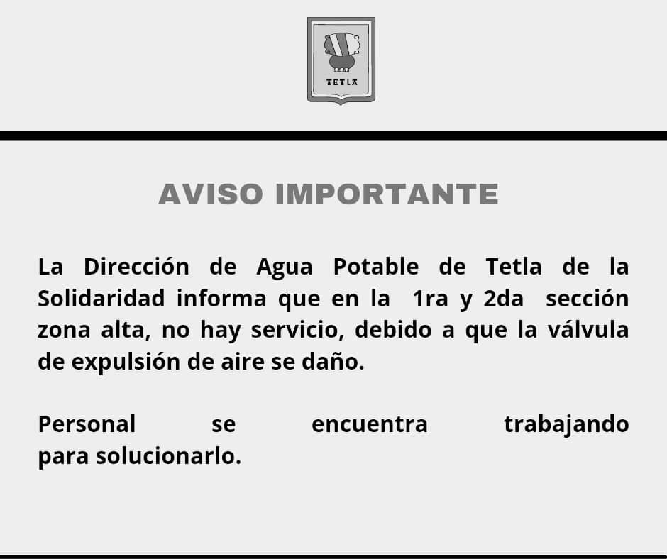 Municipios Sin servicio de agua 1ra y 2da Sección Zona Alta de Tetla 13 abril, 2021 Admin Twittear Compártelo:TwitterFacebook Continue Reading Previous Abierta la exposición fotográfica de tarjetas de presentación comercial de los años 1914-1930Next Arranca campaña de residuos electrónicos en Apetatitlán Te puede interesar Municipios Gobierno de Chiautempan trabaja en regulación de espacios libres en vía pública 12 febrero, 2026 Admin Municipios Continúan trabajos para el saneamiento del río Zahuapan desde el municipio de Tlaxco 11 febrero, 2026 Admin Municipios Atendió protección civil de San Pablo del Monte reportes de incendios de pastizales y vehículo 11 febrero, 2026 Admin