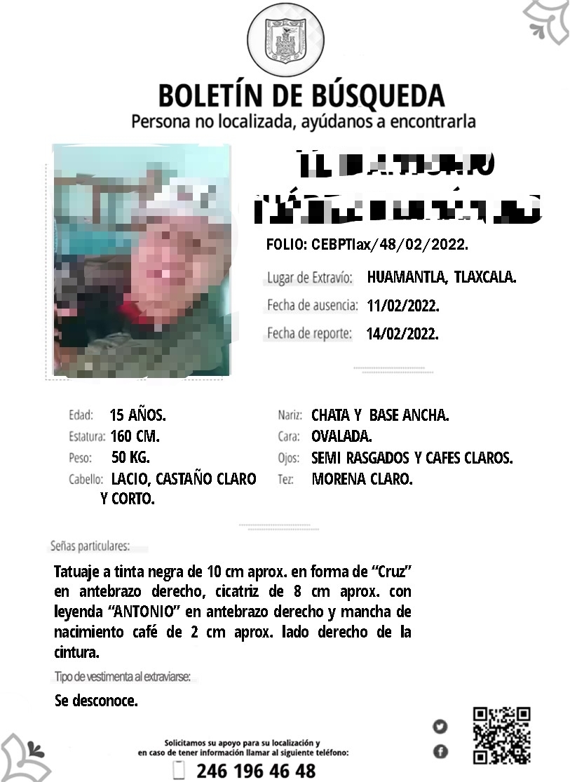 Durante su arribo confirmaron que se trataba del menor identificado con las iniciales L.A.J.H quien contaba con una ficha de búsqueda emitida por la CEBP y la Fiscalía Especializada en Personas Desaparecidas y No Localizadas con fecha del 14 de febrero del 2022.